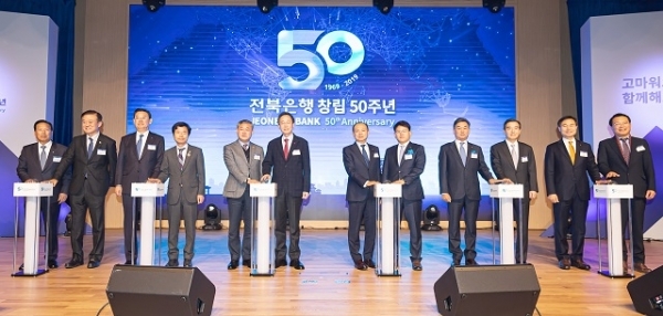 10일 50주년 기념식에서 임용택 은행장은 “전북은행은 항상 도민들과 함께 해왔으며 도민들의 자존심을 지켜왔다”며 “IMF외환위기에 은행이 존폐의 기로에 섰던 극한의 상황도 있었지만 고비마다 고객님의 사랑과 믿음, 임직원의 지혜와 피땀 어린 노력으로 전북은행을 지켜냈다”고 소회를 밝혔다.