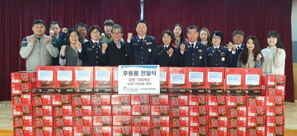 무주군의용소방대연합회(회장 김병상)가 관내 소외계층들을 위해 써달라며 무주종합복지관(관장 이영재) 측에 라면 100박스(135만원 상당)를 기탁했다.