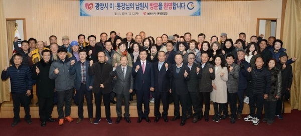 남원시는 이날 춘향문화예술회관에서 이·통장 방문단 환영식을 열고 우의를 다졌다.