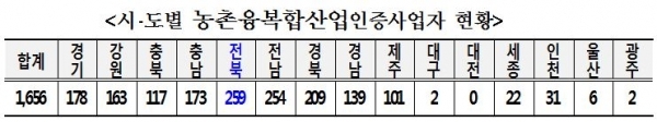 농촌자원을 활용한 농촌융복합산업 인증사업자도 전국 최고의 실적을 보였다. 올해 기준 도내 농촌융복합산업 인증사업자는 259개소로 3년 연속 전국 1위를 차지했다.