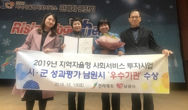 남원시가 전북도가 주관한 ‘2019년도 지역 자율형 사회서비스 투자 사업’ 시·군 성과평가에서 우수기관으로 선정됐다.