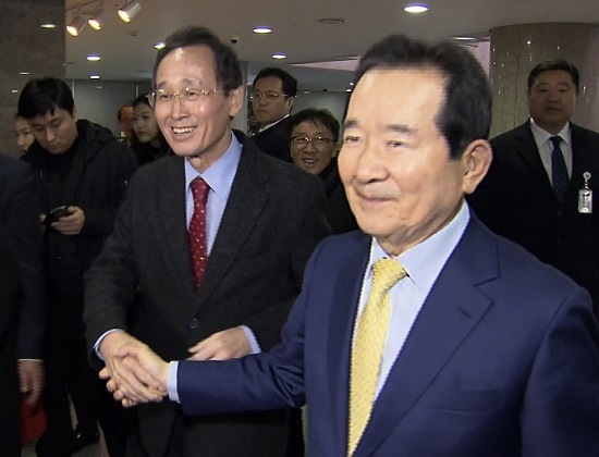 전북의 핵심법안 통과를 촉구하기 위해 17일 국회를 찾은 송하진 도지사가 이날 청와대의 지명을 받은 정세균 국무총리 후보자를 만나 환담을 나눴다. 특히 송 지사는 정 후보자에게 전북을 위해 힘써줄 것을 요청했다.