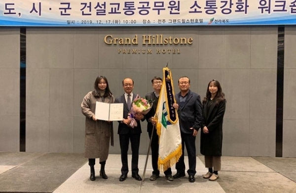 지난 17일 전주 그랜드힐스턴호텔에서 열린 ‘전북도 건설교통공무원 워크숍’에서 고창군 이종연 건설도시과장이 참석해 최우수상을 수상했다.