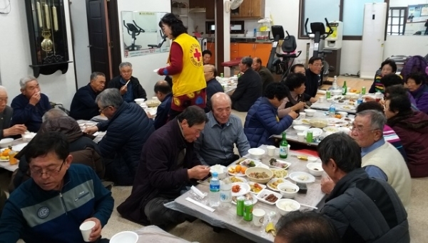 고창군 대산면적십자봉사회(회장 강순자)는 17일 대산면 소재지 경로당에서 지역 어르신들 150여 명을 모시고 사랑의 점심 나눔 봉사활동을 펼쳤다.