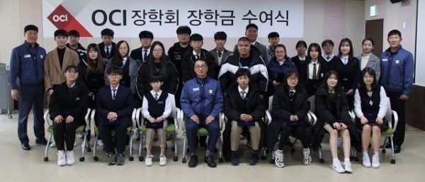 재단법인 OCI 장학회(이사장 한철)가 지난 20일 OCI 군산공장에서 지역 학생들에게 장학증서와 장학금 전달하는 장학금 수여식을 개최했다.