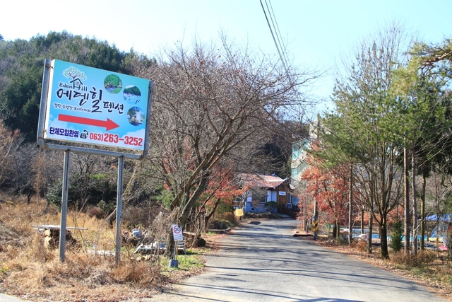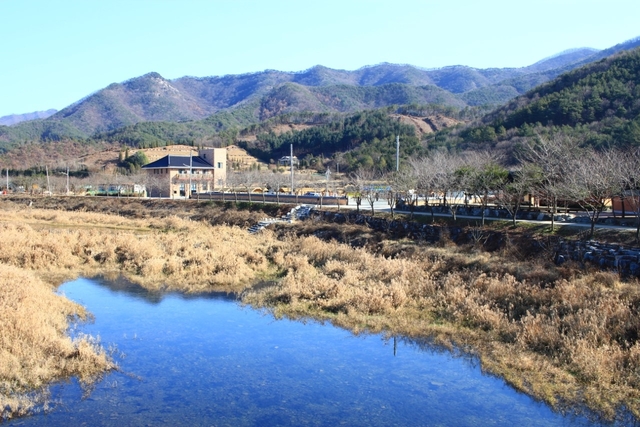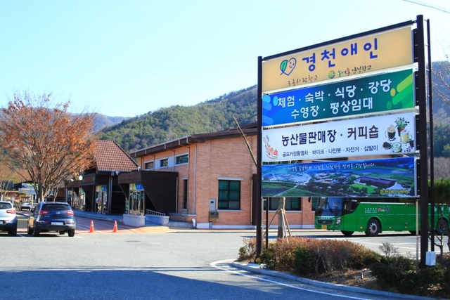 다리를 건너면 왼쪽에는 경천애인 농촌사랑학교(농촌인성학교)가 있습니다. 이곳은 경천면 사람들의 정성이 담긴 체험장입니다. 경천애인에서는 학교, 회사, 지자체, 개인 등을 대상으로 체험 활동을 하고 있습니다. 농사철에는 농산물 수확 체험을 할 수 있고, 상시 체험이 가능한 프로그램을 운영하고 있답니다. 이곳에서는 숙박과 식사를 할 수 있고 강당 시설도 갖추고 있어 다양한 활동을 할 수 있습니다.