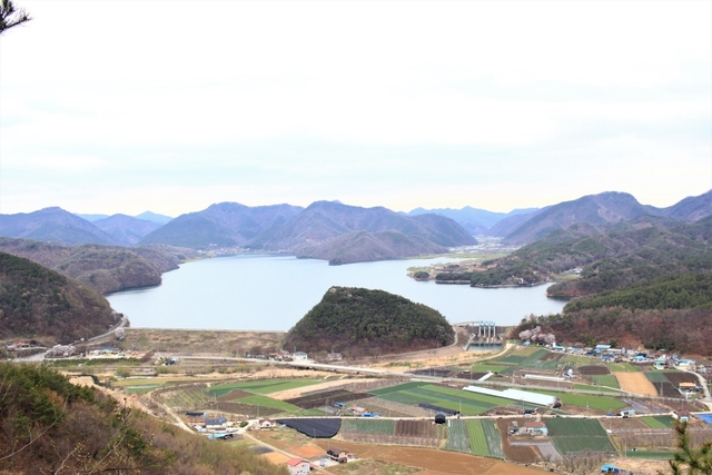 내리막길을 몇 구비 돌아 내려가면 운암산이 가까이 보입니다. 목적지에 그만큼 가까워졌다는 의미입니다. 운암산 위에는 흰색으로 보이는 수조가 있는데요. 진안 용담댐에서 22km 정도 길이의 도수로 압력을 조정해주는 역할을 하는 수조입니다. 수조가 있는 곳에서 물이 낙하하면서 수력 발전을 할 때 발생하는 압력을 조정합니다. 용담댐에서 도수로를 통해 공급된 물이 발전하고 나면 고산정수장에서 정수해서 광역 상수도로 활용됩니다.