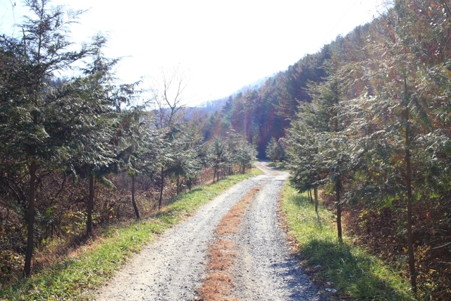 이제부터는 내리막길입니다. 내리막길은 미끄러우므로 더 조심스럽습니다. 조금 내려가면 편백 숲이 보입니다. 길도 편안해졌습니다. 마침 벌목작업을 하고 있어 부분적으로 방해를 받기는 했지만 걷기에는 무리가 없었습니다. 편백숲을 지나면서 기분이 더 상쾌해지는 것을 느낍니다. 굳이 피톤치드를 거론하지 않아도 몸에서 먼저 반응하는 것을 알 수 있습니다.