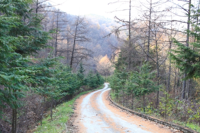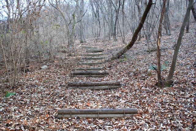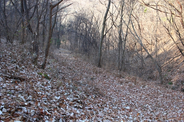 잣나무 숲 짧은 구간을 지나면 참나무류가 군락을 이루는 지역을 지납니다. 이미 나무들은 잎을 떨구고 겨울 채비를 마쳤습니다. 길 위에는 나뭇잎들이 쌓여 발걸음을 옮길 때마다 저마다 소리로 연주를 합니다. 숲에서만 들을 수 있는 자연의 소리입니다.