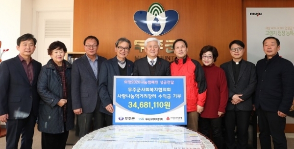 지난 24일 바르게살기운동무주군협의회(회장 김만성)는 지역인재양성에 써달라며 장학금 100만원을 무주군교육발전장학재단에 기탁했다. 또 무주군사회복지협의회(회장 이영재)에서는 지난달에 열렸던 사랑 나눔 먹거리장터 수익금과 기부물품 등 3400여만 원 상당을 전달했다.