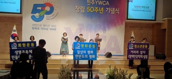 기독여성들의 공동체 ‘전주YWCA’는 올해 창립 50주년을 맞았다. 이에 4월 전주 바울센터에서 창립 50주년 기념예배와 기념식을 열고 100년을 이끌어갈 비전을 선포했다.