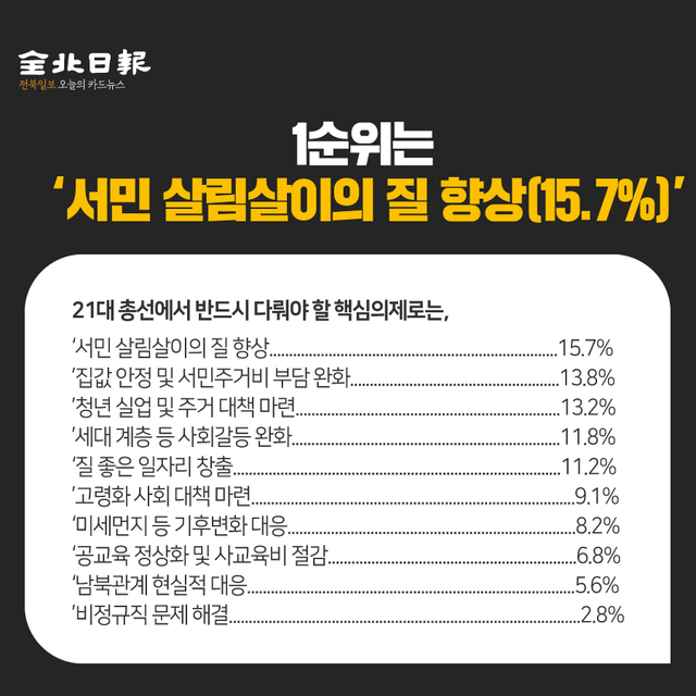 [카드뉴스] 21대 총선 국민이 바라는 공약은?