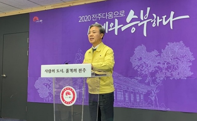 김승수 시장은 21일 긴급 기자회견을 열고 확진자가 근무중인 국민연금공단 건물과 여자친구가 근무하는 KT 건물에 대한 긴급 소독을 실시하는 한편, 필수 인력을 제외한 출근 자제를 요청했다고 밝혔다.
