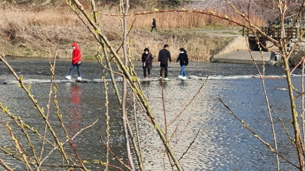 움트는 버들 사이로 징검다리를 건넙니다. 두꺼운 외투는 못 벗었지만 걸음 한결 가볍습니다. “봄은 볼 게 많아서 봄/ 보이지 않는 것을 바라보는 봄”(박노해, <내 인생의 모든 계절> ) 이라지요.