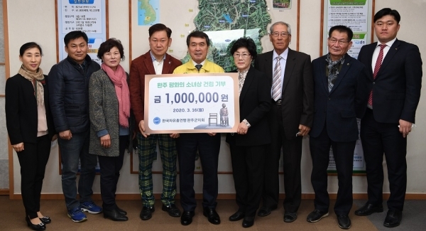 한국자유총연맹 완주지부, 완주 평화의 소녀상 건립 기금 전달