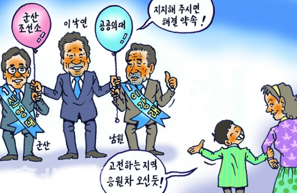 [전북일보 만평] 이낙연 전 총리의 전북 유세