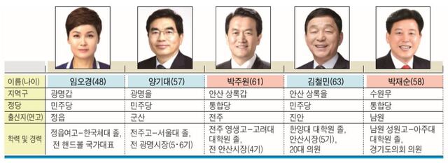 이웃인 광명갑에서는 핸드볼 국가대표 출신인 임오경(정읍) 민주당 후보가 불출마를 선언한 고창 출신 백재현 의원의 바통을 이어 받았다.
