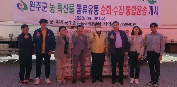 완주군 관계자는 “완주군과 완주군조합공동사업법인이 완주군 공동브랜드 ‘완전한 완주’를 내걸고 통합 운송하기로 했다.”며 “대형 차량이 참여단체를 돌며 농·특산물을 수집한 뒤 서울 가락동과 안양 등 수도권 도매시장에 완주 농·특산물을 출하하게 된다.”고 밝혔다.