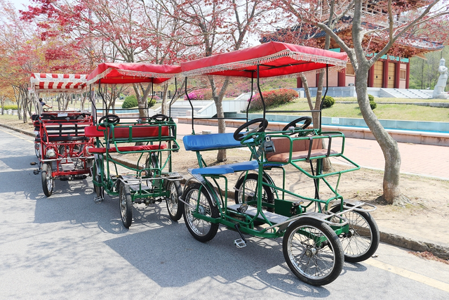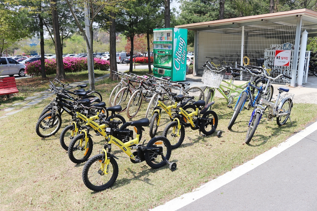 익산 서동공원 입구 간이슈퍼에서는 자전거를 대여해주고 있으며 대여료는 각각 1인용 자전거 5,000원 / 2인용 자전거 10,000원 / 4인용 자전거 15,000원입니다.
