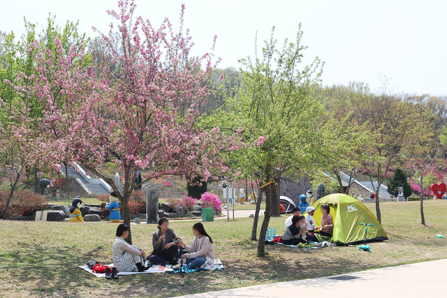 익산 서동공원은 중앙광장, 수변휴게소, 미륵광장, 체력단련장, 피크닉장, 데크, 어린이놀이터, 어린이숲체험장 등이 있어 아이들과 함께 봄소풍을 떠나기에 최적의 공원이라고 할 수 있는데요. 주말을 맞아 이미 많은 분이 자리를 잡고 앉아있는 모습을 볼 수 있습니다.