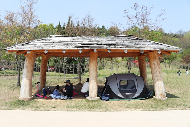 서동공원 곳곳에는 나무그늘과 더불어 햇빛을 피할 수 있도록 원두막형태의 그늘이 있어 방문객들 대부분은 원두막 그늘에 돗자리와 텐트를 펴고 편안한 자세로 앉거나 누워 나른한 주말 여유를 만끽하는 모습을 보였습니다.