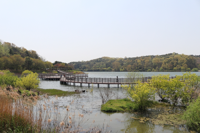 무왕루의 웅장함에 감탄하여 한참을 쳐다보다 이내 금마저수지 산책로로 향했습니다. 금마저수지는 대한민국 지도를 닮았다고 하여 지도 연못이라고도 불리는 저수지고 미륵산을 발원지로 안정적으로 용수가 공급되어 1년 365일 물이 마르지 않으며 주변에 축사나 공장 등 오염원이 없어 1급수의 수질을 자랑합니다.