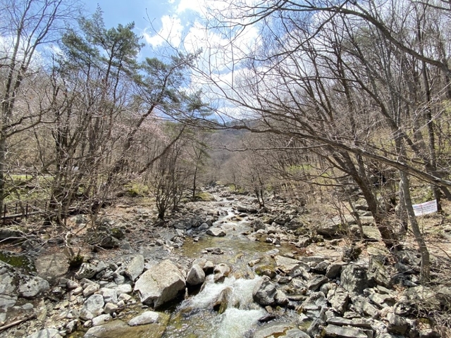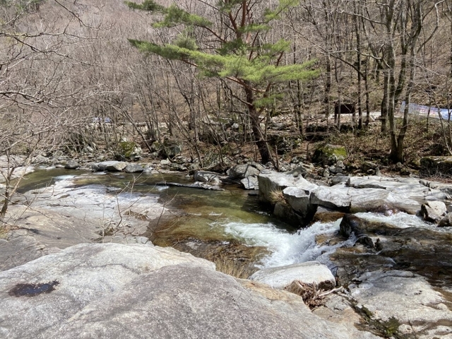 숲 한가운데를 뚫고 지나가는 느낌보다는 숲 안에 소속되어있는 듯한 기분이 들었습니다. 졸졸 흐르는 시냇물 소리와 바람과 함께 노래를 부르는 나무들까지. 천천히 걸으면서 감정에 집중해보시기 바랍니다.