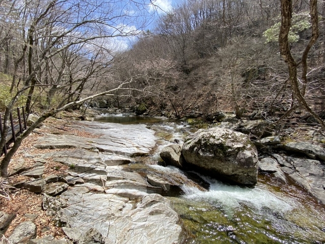 2구간의 최대한 자연 길을 조성하면서 조금 위험한 지점에는 다리를 놓아 등산객들이 좀 더 자연에 빠질 수 있도록 유도했습니다. 2구간에서 제일 절경은 바로 비파담이 아닐까 싶습니다. 비파담은 커다란 암반 위로 흐르던 물줄기가 여러 줄기로 갈라지면서 내려오며 못을 이룬 계곡이며 이 모습이 발현악기 비파와 닮았다고 해서 이름을 비파담이라고 지었습니다. 눈을 감은 채 계곡물 여러 줄기로 갈라서면서 내려오는 소리를 들어보시길 바랍니다.