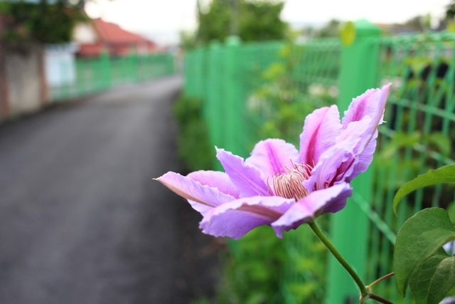 백지사지를 나와 오른쪽 골목길을 따라 여산 성당으로 향했습니다. 깔끔하게 정리된 골목길을 향해 큰 꽃 한 송이 고개를 내밀었습니다. 덩굴식물인 큰꽃의아리(클레마티스)입니다. 꽃이 워낙 커서 한 송이만으로도 골목을 환하게 밝혀줍니다.
