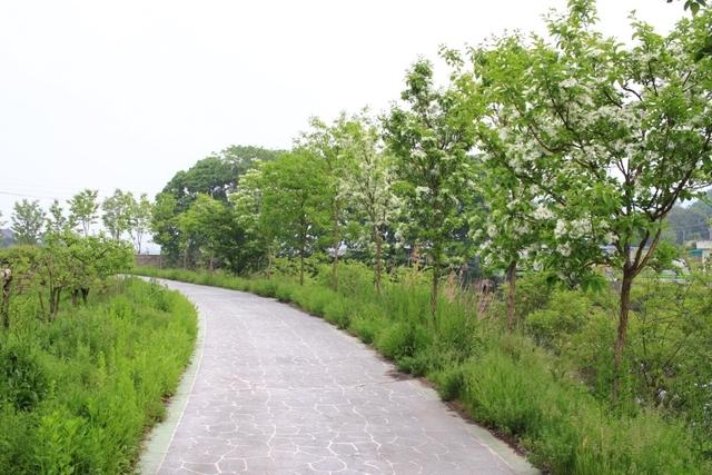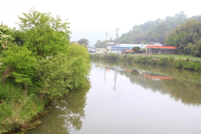 여산교 입구에서 왼쪽 제방길을 따라가면 남원사(南原寺)가 나옵니다. 제방길 가로수는 이팝나무입니다. 마침 하얀색 꽃이 풍성하게 피었습니다. 보기만 해도 배가 부르다는 이팝나무꽃입니다. 나무 아래에는 금계국이 무성하게 자라고 있습니다. 금계국꽃이 필 즈음에는 제방에 노란색 물결이 일렁일 것입니다.