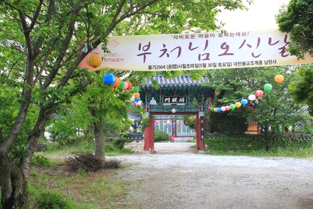 남원사로 들어서는데 부처님 오신 날 행사를 알리는 현수막이 보입니다. 올해는 코로나19 사태로 행사를 제때 하지 못하고 윤사월 초파일(5월 30일)에 하는 것으로 일정이 조정되었답니다.