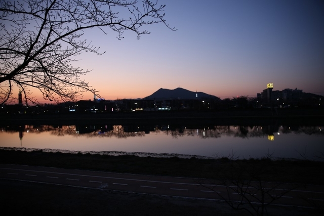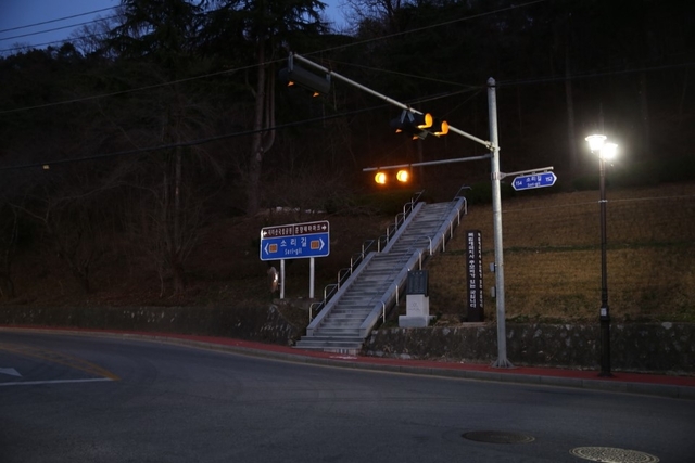 저 건너편에는 광한루가 자리하고 있는 남원 시내고 요천을 건너 이곳에는 춘향 테마파크가 자리하고 있습니다. 이곳은 전북 남관광단지입니다. 해가 막 저편으로 떨어진 남원 시내의 야경은 이런 모습입니다. 이곳은 지리산국립공원과 춘향테마파크로 가는 갈림길입니다.