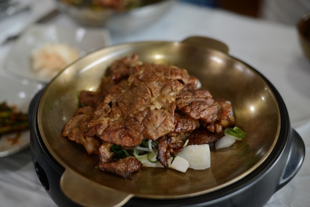 점심에만 특별 메뉴가 있는데 돼지 석갈비와 막국수를 세트로 먹을 수 있습니다.