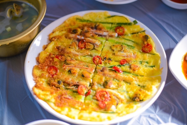 우리가 주문한 해물파전이 먼저 나왔습니다.