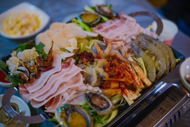 35,000원에 이런 비주얼이라니, 삼겹살에 전복 새우등 다양한 해산물이 한가득 입니다.