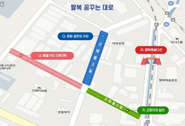 시는 ‘팔복 꿈꾸는 대로’라는 주제로 △근로자의 쉼터 △청춘스케치북 △청춘광장 △팔복예술다리 등 4개의 세부사업을 진행한다.
