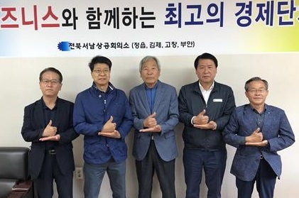 전북서남상공회의소 김적우 회장을 비롯한 부회장단은 지난 2일 상의 회장실에서 코로나19 최전선에서 혼신의 힘을 다하고 있는 대한민국 의료진을 응원하는 ‘덕분에 챌린지 캠페인’에 동참했다.
