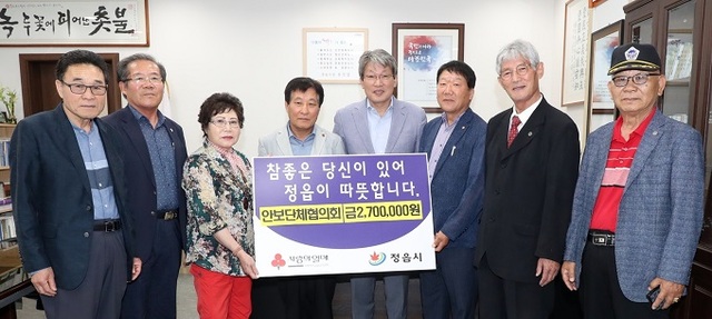 정읍 안보단체협의회(회장 윤재동)는 지난 2일 코로나 19 극복 성금 240만원을 정읍시에 전달했다.