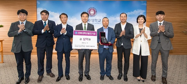 전북대 김동원 총장은 이날 오전 정 대표를 대학에 초청, 김재곤 치대학장과 김경아 치의학과장 등이 참석한 가운데 발전기금 기탁식을 갖고 감사패 전달 등을 통해 감사 인사를 전했다.