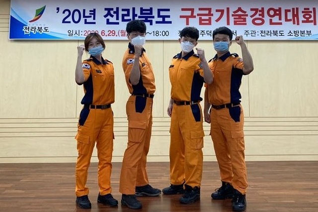 완주소방서가 지난 29일 전주 덕진소방서 대강당에서 열린 ‘2020년 전라북도 구급기술경연대회’에서 우승했다.