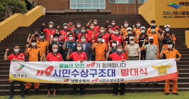 남원소방서(서장 김광수)는 지난 10일 지리산 뱀사골 탐방안내소 앞에서 ‘119시민수상구조대’ 발대식을 가졌다.
