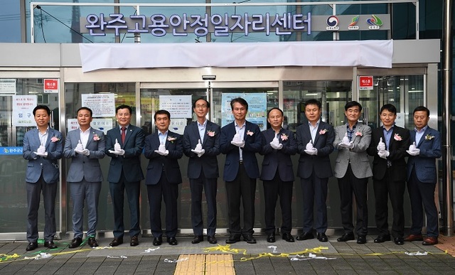 15일 완주군은 봉동읍 둔산리 근로자복지관에서 박성일 완주군수, 송지용 전북도의장, 김재천 완주군의장, 김영규 고용노동부 전주지청장 등 30여명이 참석한 가운데 완주 고용안정 일자리센터 개소식을 개최했다.