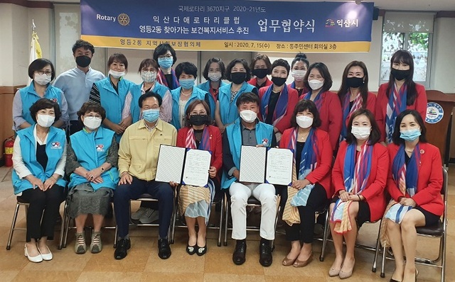 익산시 영등2동 지역사회보장협의체(민간위원장 윤근호, 공공위원장 박기성)와 익산 다애로타리클럽(회장 모묘숙)은 15일 찾아가는 보건복지서비스를 위한 업무협약을 체결했다.
