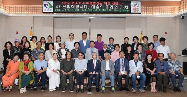 (사)한국예총 완주지회(지회장 국중하)는 지난 17일 완주군청 1층 대회의실에서 박성일 완주군수와 소재호 한국예총 전라북도 연합회장을 비롯한 문화예술계 인사, 주민 등 50여명이 참석한 가운데 ‘4차산업 혁명시대, 예술의 미래와 가치’를 주제로 한 세미나를 개최했다.