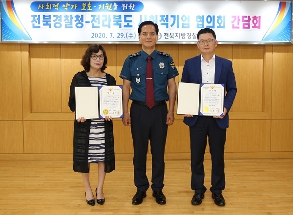 이날 간담회는 경기 침체로 어려움을 겪고 있는 사회적기업에 대한 공공기관의 인식개선을 위해 이뤄졌다. 전북경찰과 협의회는 사회적 기업에 대한 공공기관의 인식개선과 사회적기업 제품 구매 확대 및 취약계층, 사회적 약자 보호·지원을 위해 유기적으로 협력하기로 했다.