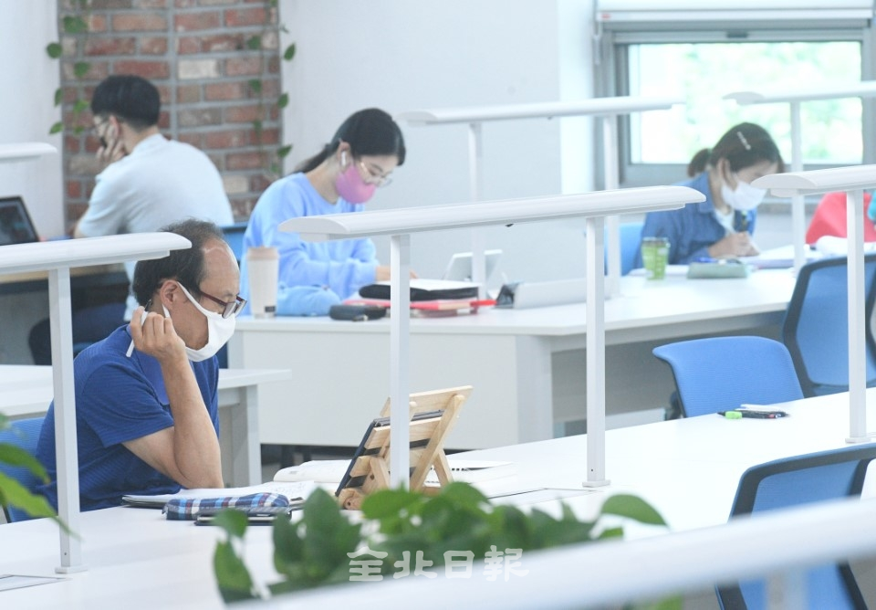 전주시 도서관들이 재개장한 4일 방학을 맞았지만 코로나19 등의 영향으로 갈곳 없는 학생들이 평화도서관을 찾아 방역지침을 지키며 책을 보고 있다. 오세림 기자