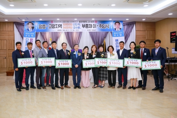 이날 취임식에서 강수형 신임 부총재는 코로나19로 어려움에 처한 이웃에 사용해달라며 LCIF기금 1000달러, 운영성금 100만원, 회관신축기금 100만원을 기탁했다.