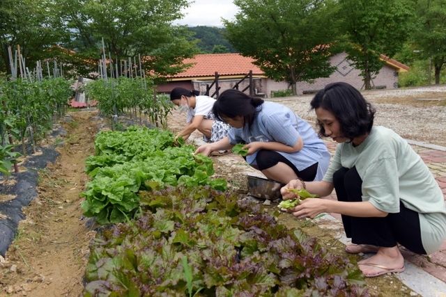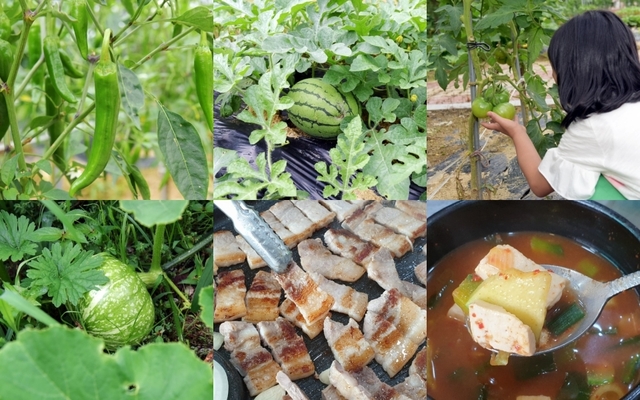솔다박체험 휴양마을 근처에는 작은 텃밭이 있는데요. 아이들과 함께 보물찾기하듯 수박, 호박을 찾는 재미가 쏠쏠한데요. 이곳에서 숙박하시는 분들은 청정지역 무주에서 자라는 상추, 고추 등 신선한 채소를 무료로 이용할 수 있습니다. 텃밭에서 막 수확한 상추와 삼겹살 한 점에 금세 저녁 식탁은 풍성해집니다.