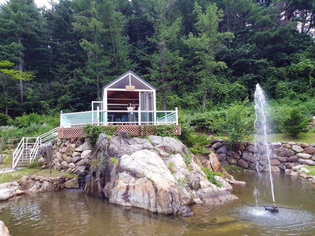 솔다박마을에서 자동차로 15분 정도 거리에 자리 잡은 무주 명천마루 카페는 덕유산 자락에서 흘러내리는 수정 같은 맑은 물소리를 들으며 책을 읽기 좋은 곳인데요. 건축가인 사장님께서 손수 카페를 만들었다고 합니다. 그날그날 정성스레 반죽하여 만든 와플에 직접 끓인 머루베리청, 싱싱한 과일과 무주에서 재배한 갖가지 베리류를 넣은 머루 베리와플은 입을 즐겁게 해줍니다.