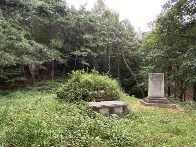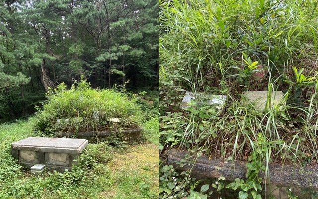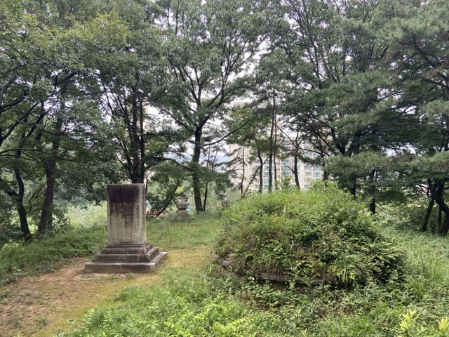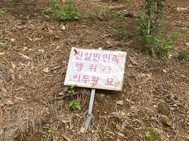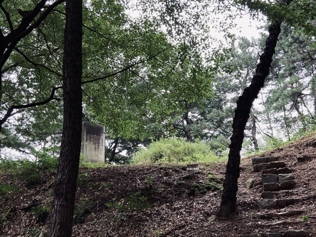 무덤의 봉분은 둘레석에 생긴 균열을 제외하고는 풀이 많이 자라서 확인하기 힘들었다. 다만 풀 속에 숨겨진 표지판들은 찾아볼 수 있었습니다. 후대 사람들의 분노가 저한테까지 느껴졌습니다.